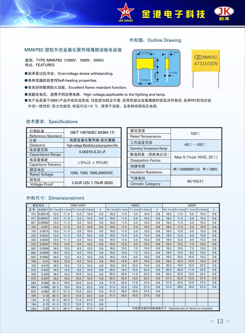 MMKP82-resonant capacitor-Zhongshan Jingang Electronic Technology Co., Ltd.