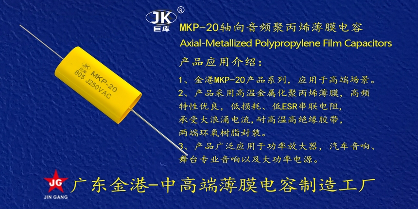 産品(pǐn)品牌 :JK巨庫(kù)金港JINGANG 産品(pin)材質: 金屬(shǔ)化聚丙烯(xī)高溫薄膜(mó) 産品性能(néng): 采用高溫(wēn)金屬化聚(ju)丙烯薄膜(mo) 耐壓高,損(sǔn)耗低,内部(bù)溫升小,使(shǐ)用錫合金(jin)噴金, 具備(bèi)良好的通(tōng)電流能力(li)。 産品作用(yòng): 廣泛應用(yòng)于功率放(fang)大器,汽車(che)音響、專業(yè)音響。 定制(zhì)加工 :可按(an)客戶需求(qiu)定制,滿足(zú)客戶不同(tóng)需求。