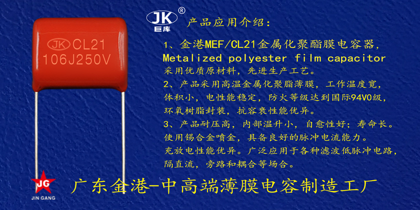 産品品牌 :JK巨(jù)庫金港JINGANG 産品材(cai)質: 金屬化聚丙(bing)烯高溫薄膜 産(chan)品性能: 采用高(gao)溫金屬化聚丙(bing)烯薄膜 耐壓高(gao),損耗低,内部溫(wen)升小,使用錫合(he)金噴金, 具備良(liang)好的高脈沖電(diàn)流能力,充放電(dian)性能優異。 産品(pin)作用: 廣泛應用(yong)于各種隔直流(liú)濾波,低脈沖電(dian)路,旁路和耦合(he)等🌍場合。 定制加(jia)工 :可按客戶需(xū)求定制,滿足客(kè)戶不同需求。