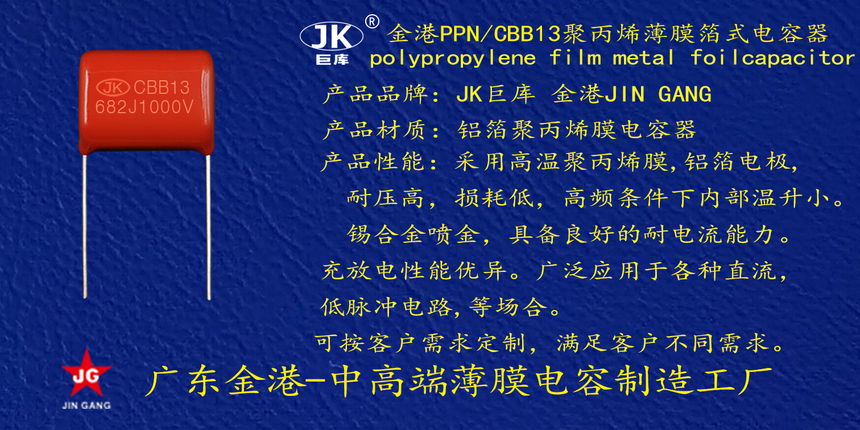 産(chan)品品牌 :JK巨庫金港(gǎng)JINGANG 産品材質: 鋁箔聚(ju)丙烯膜電容器 産(chan)品性能: 采用高溫(wēn)聚丙烯膜,鋁箔電(dian)極耐壓高, 損耗低(dī),i高頻條件下内部(bù)溫升小錫合金噴(pen)金, 具備良好的耐(nai)電流能力。充放電(dian)性能優異。 産品作(zuò)用: 廣泛應用于各(ge)種直流,低脈沖電(diàn)路,等場合。 定制加(jiā)工 :可按客戶需求(qiu)定制,滿足客戶不(bu)同需求。