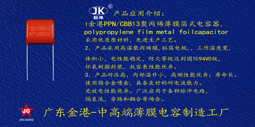 産(chan)品品牌 :JK巨庫金港(gang)JINGANG 産品材質: 鋁箔聚(ju)丙烯膜電容器 産(chǎn)品性能: 采用高溫(wēn)聚丙烯膜,鋁箔電(diàn)極耐壓高, 損耗低(di),i高頻條件下内部(bu)溫升小錫合金噴(pēn)金, 具備良好的耐(nài)電流能力。充放電(diàn)性能優異。 産品作(zuò)用: 廣泛應用于各(gè)種直流,低脈沖電(dian)路,等場合。 定制加(jiā)工 :可按客戶需求(qiu)定制,滿足客戶不(bú)同需求。