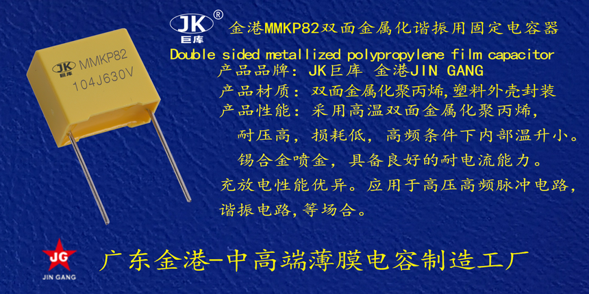 産(chǎn)品品牌 :JK巨庫金(jīn)港JINGANG 産品材質: 雙(shuāng)面金屬化聚丙(bǐng)烯,塑料外殼封(fēng)裝 産品性能: 采(cai)用高溫雙面化(hua)聚丙烯,耐壓高(gāo), 損耗低,高頻條(tiáo)件下内部溫升(sheng)小。錫合金噴金(jin), 具備良好的耐(nài)電流能力。充放(fang)電性能優異。 産(chan)品作用: 應用于(yú)高壓高頻脈沖(chòng)電路,諧振電路(lu),等場合。
